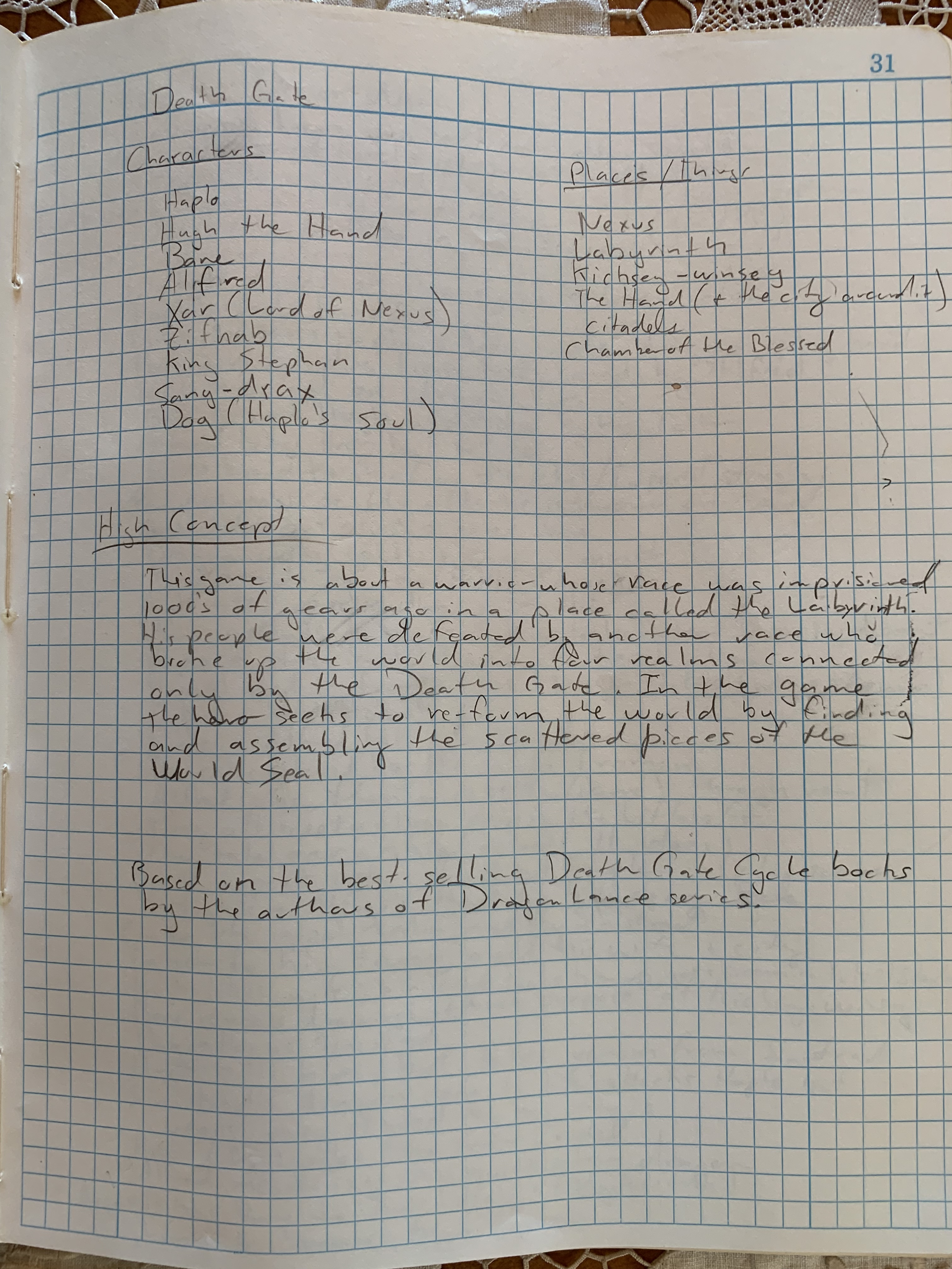 Even other designers at Legend were somewhat mystified with my intentions. My boss Mike Verdu looked at me strangely when I said I wanted to call the game ‘Death Gate.’ He asked, “Why not Dragon Wing? That’s the first book, right?” I just shook my head. He didn’t understand the awesomeness of what I had planned, and it took him a long time to come on board (he did eventually, when he saw the whole design).