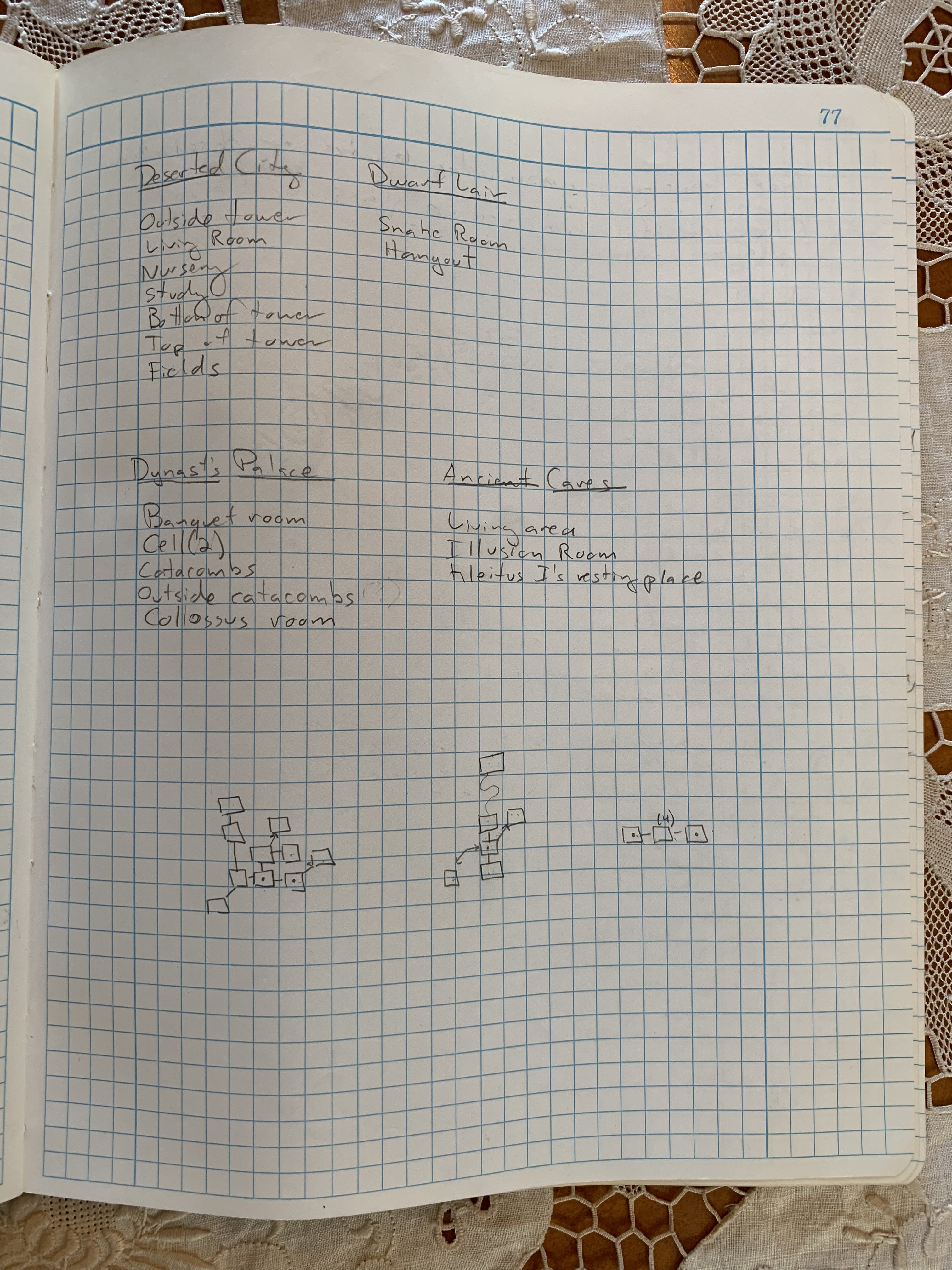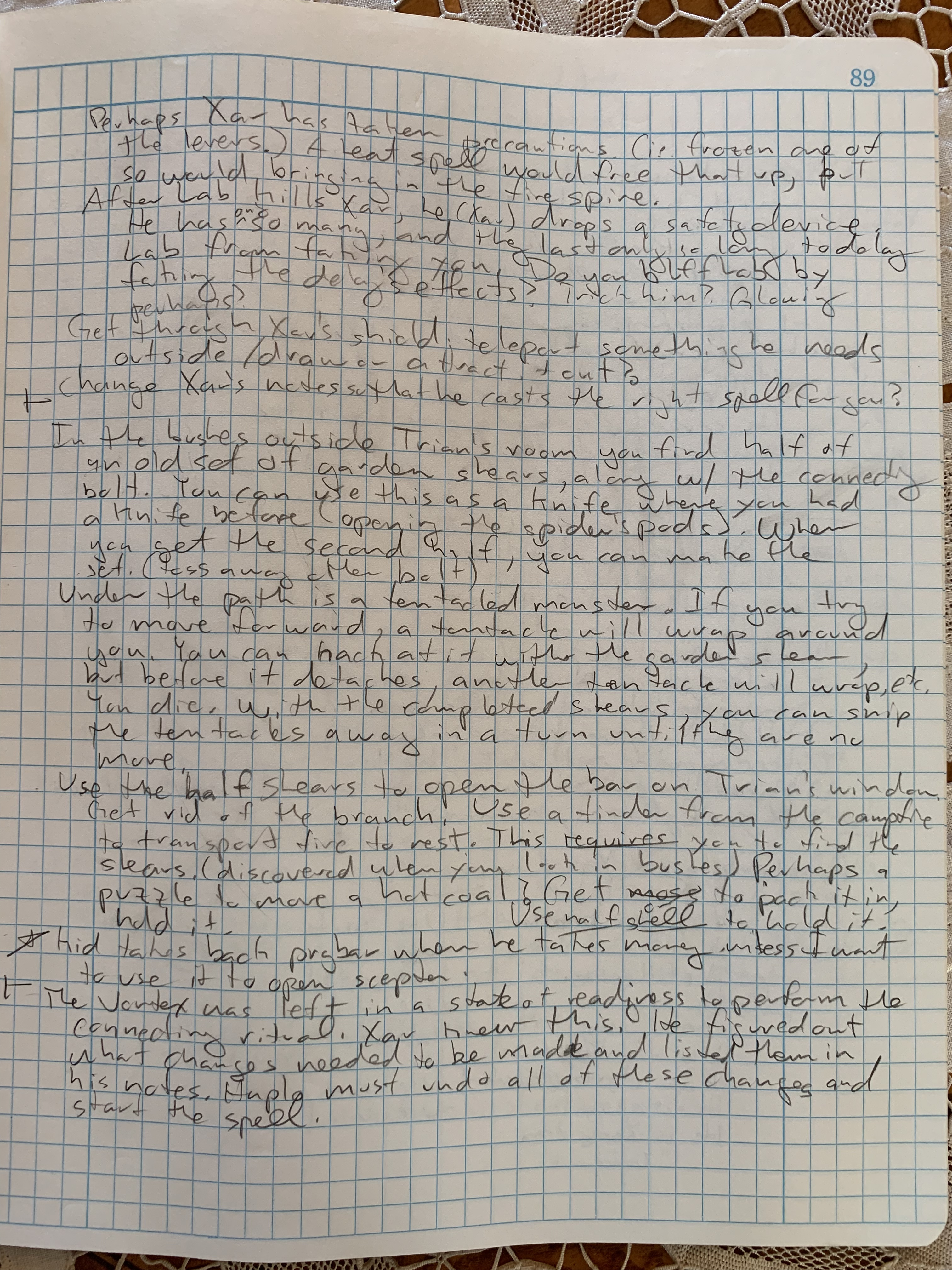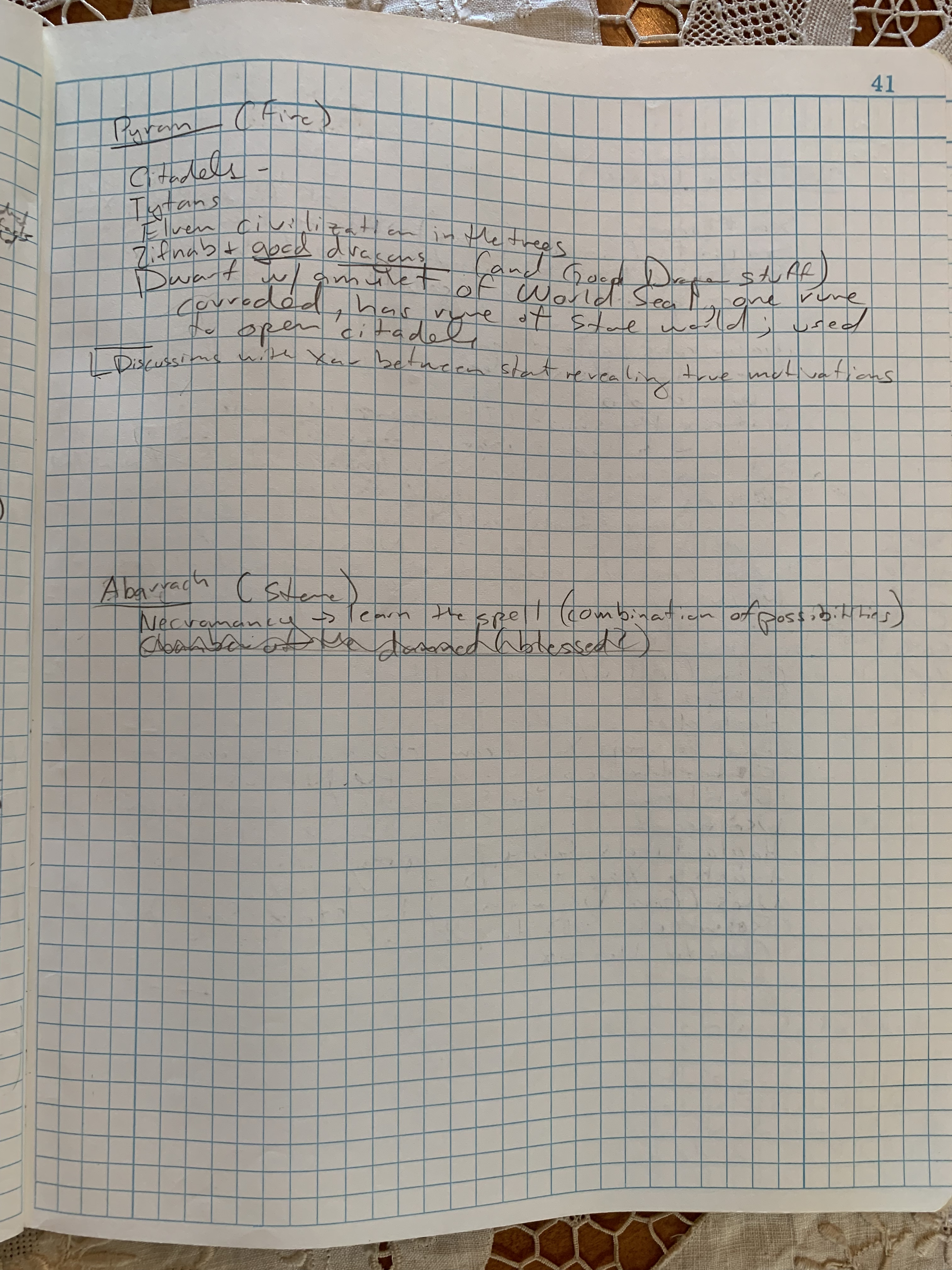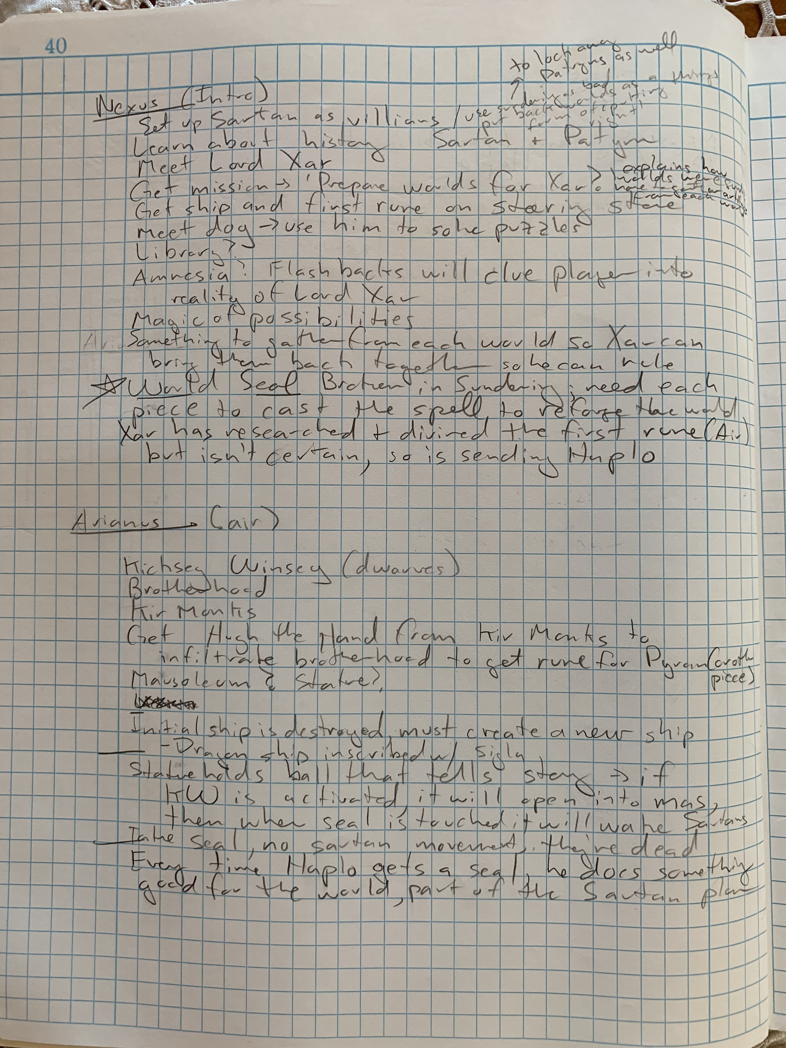 Back in the old days, we didn’t have your new-fangled phones or tablets, or even laptops really. I kept all of my notes in an Engineering Notebook. Given that I rediscovered this recently, I figured it might be illuminating to reveal the design scribbles for Death Gate here. Keep in mind that it not only contains the actual design, but a lot of false starts or ideas that I might have not intended to use, but didn’t want to forget (including the entire section I dumped in Arianus). If you can decipher my handwriting and want to get a little insight into at least my design process for an adventure game, then you’re welcome to dive in.