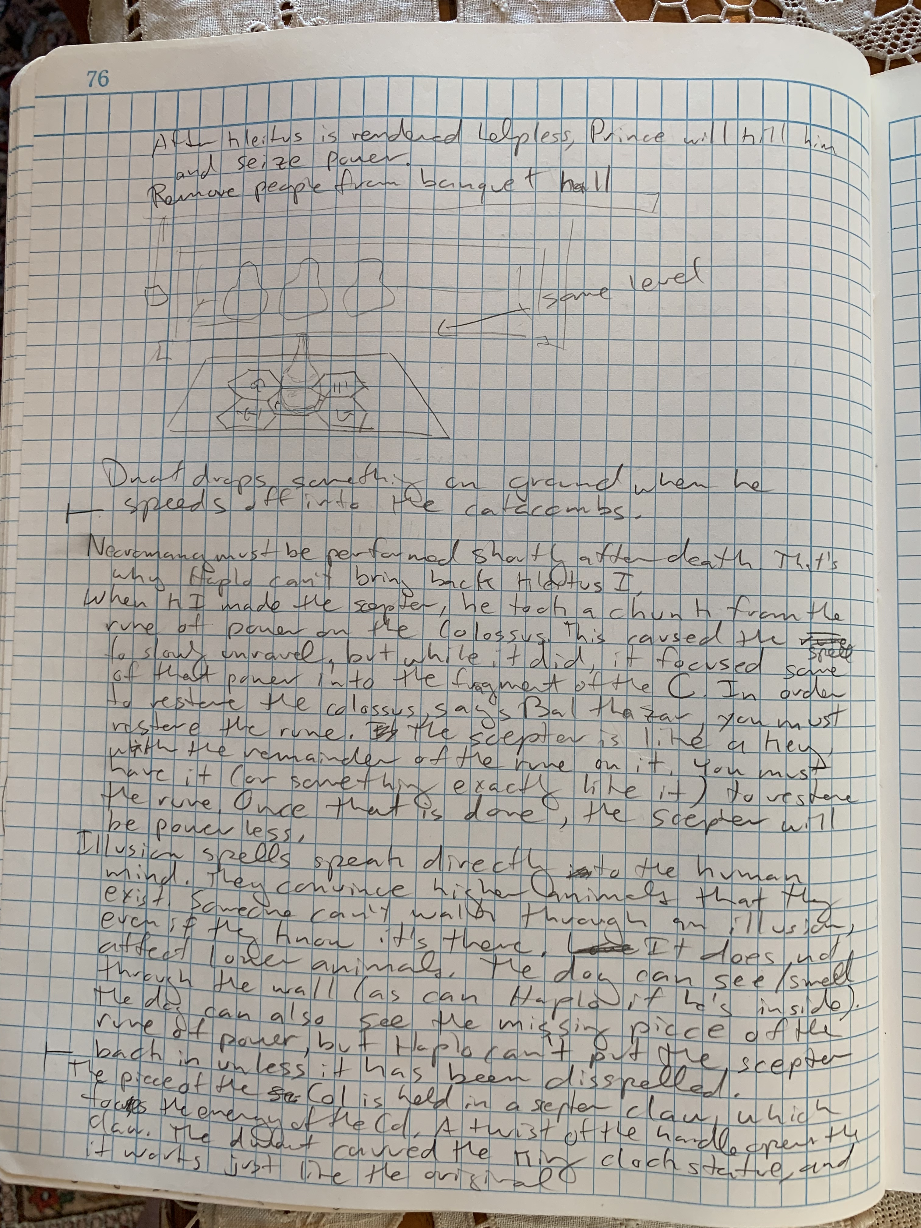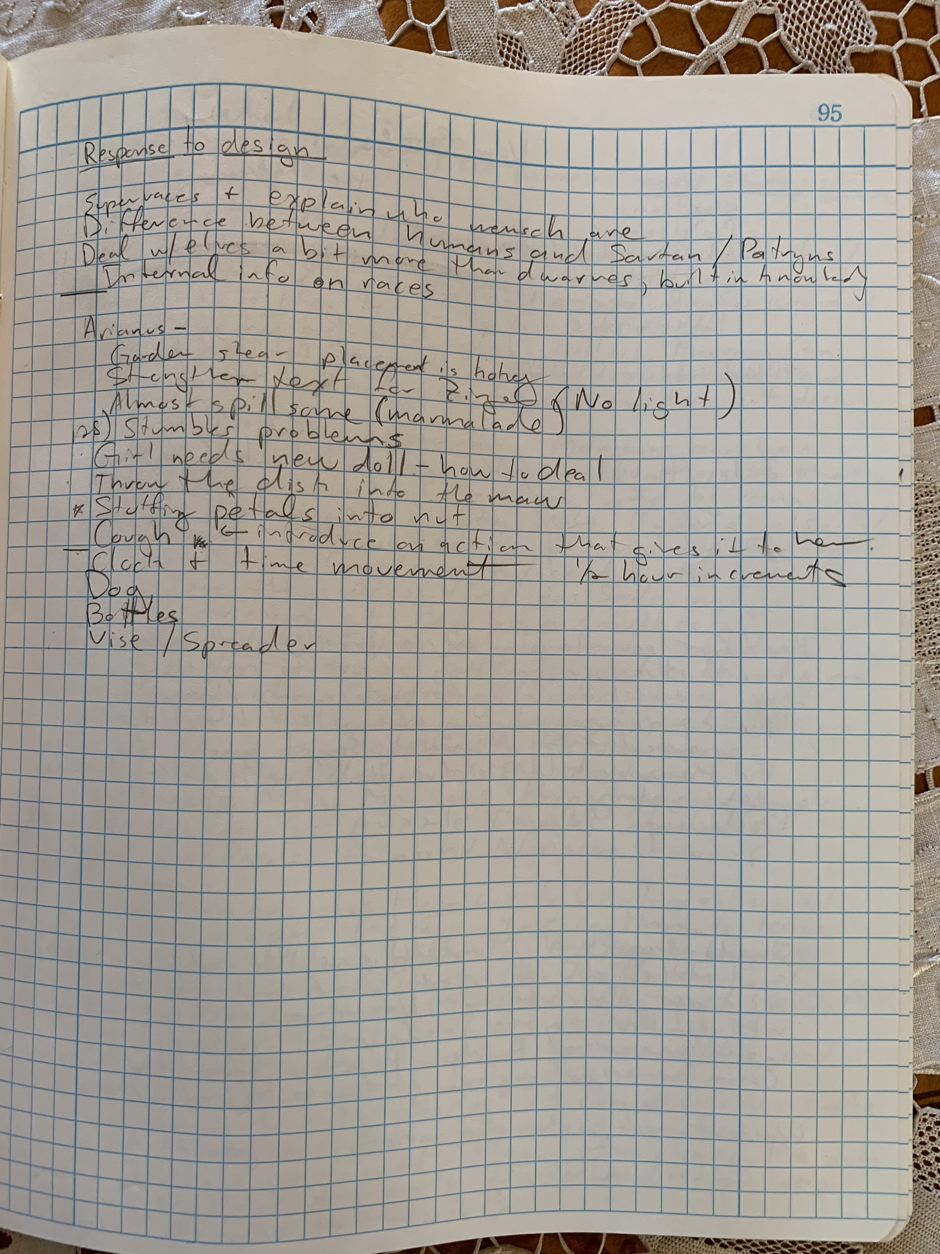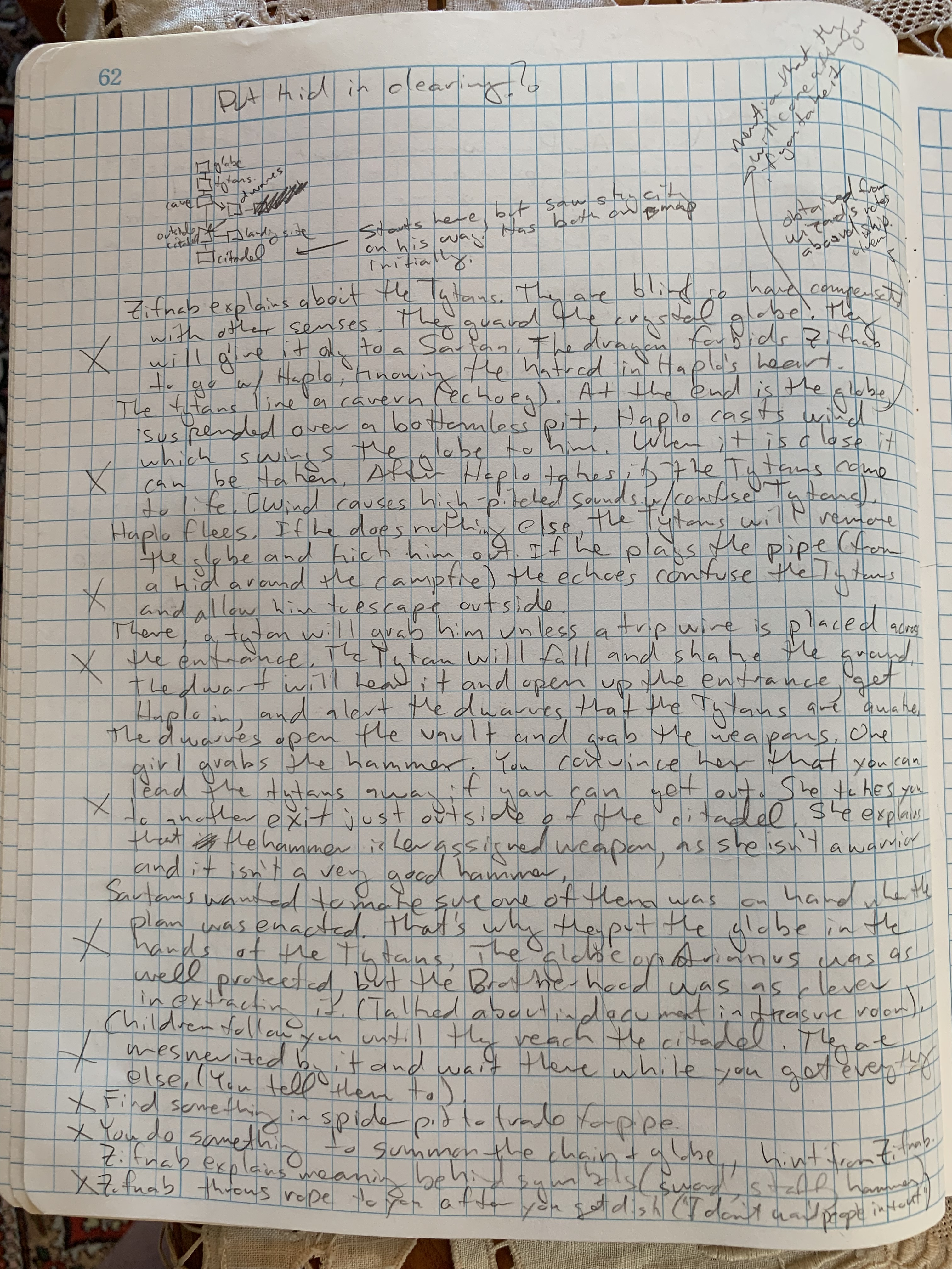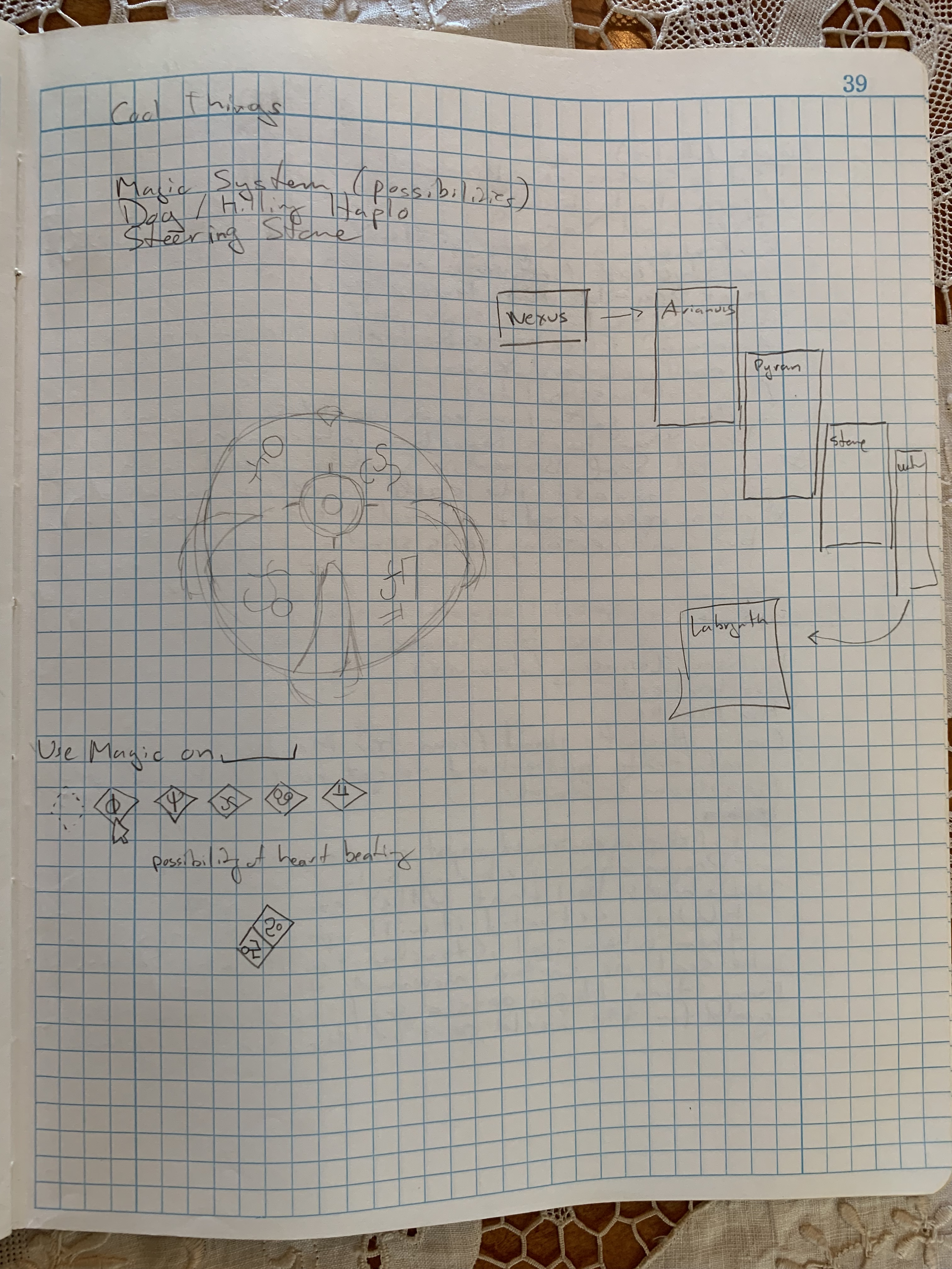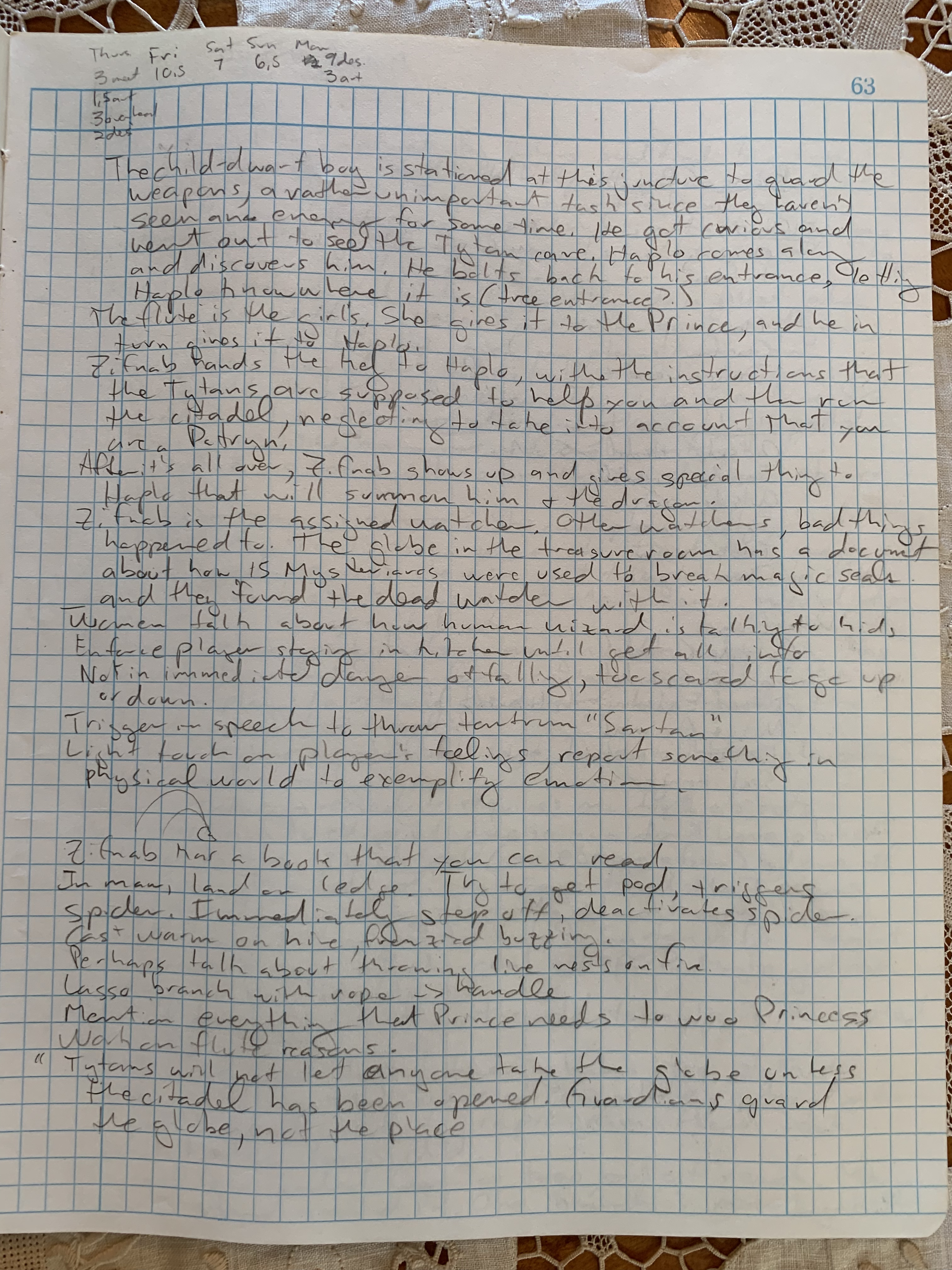 Back in the old days, we didn’t have your new-fangled phones or tablets, or even laptops really. I kept all of my notes in an Engineering Notebook. Given that I rediscovered this recently, I figured it might be illuminating to reveal the design scribbles for Death Gate here. Keep in mind that it not only contains the actual design, but a lot of false starts or ideas that I might have not intended to use, but didn’t want to forget (including the entire section I dumped in Arianus). If you can decipher my handwriting and want to get a little insight into at least my design process for an adventure game, then you’re welcome to dive in.
