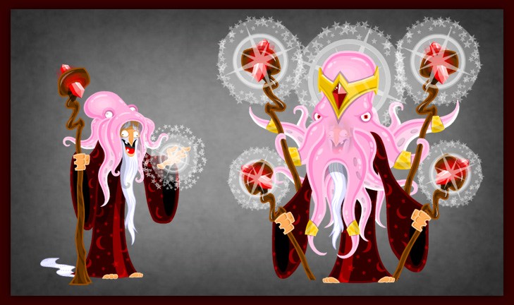 When lots of companies in Japan (and many in the US) were literally cloning Puzzles and Dragons, I wanted to put my own spin on the newly-popular collectible-card, RPG, fusion-based, strategy game. Like those games, you built a collection of creatures and fed other cards into them to level them up, evolve them, and make them more powerful. Then you would create a deck of your best to send into the dungeon/puzzle game. In Crystal Casters, you would trace a chain of gems starting with a wizard, whose energy would damage the creatures in the dungeon. Different wizards had different abilities and by looping in special gems from the board, the chain could get very powerful indeed.