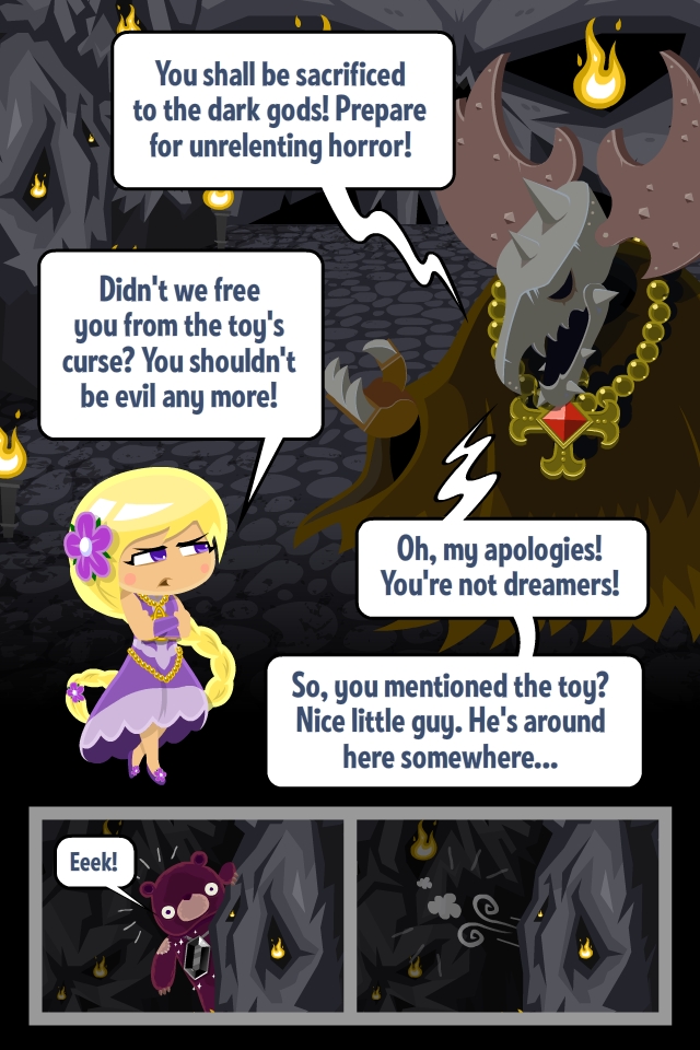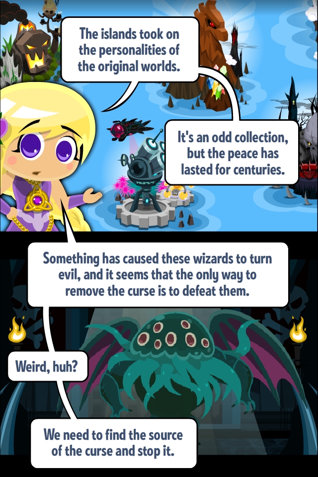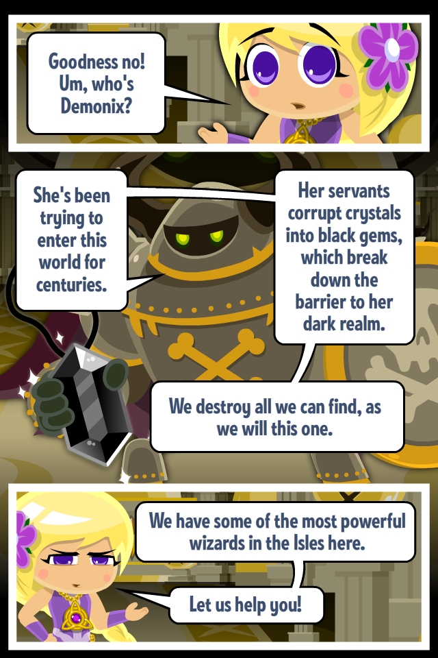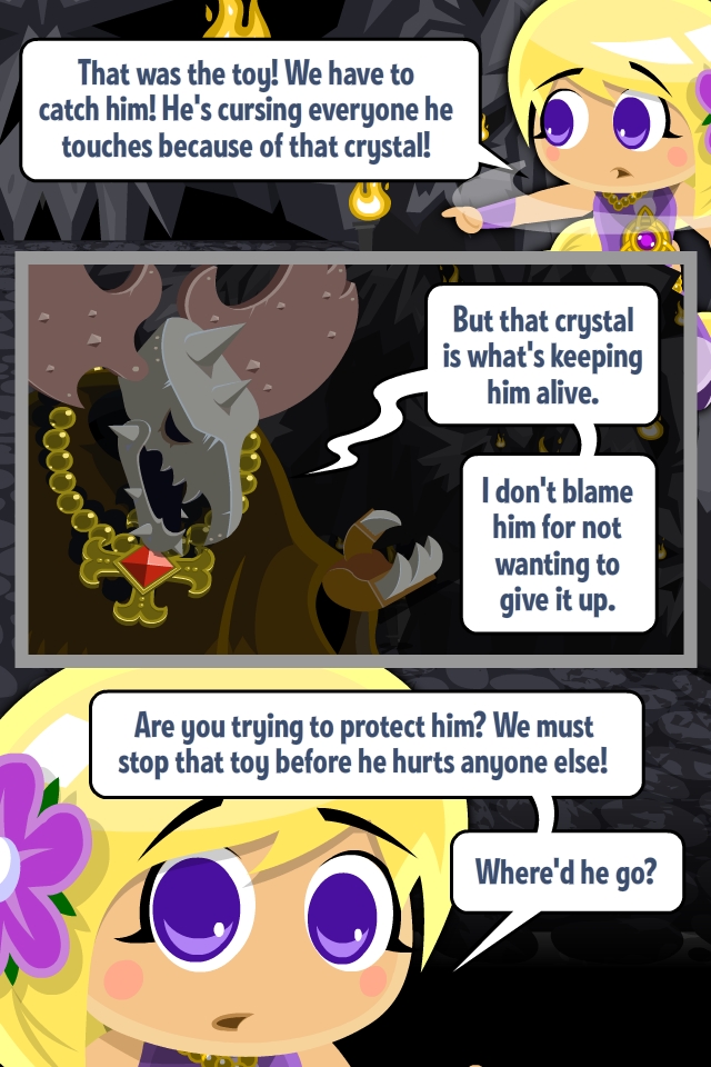 Even though the budget wasn’t huge, we still pulled together a solid–and fun!–product, that even had a little bit of storytelling. At the end of every island, the player would receive a comic book “cut scene”. I managed to recover those files, so if you’re interested, here is Crystal Casters’ delightfully weird storyline.