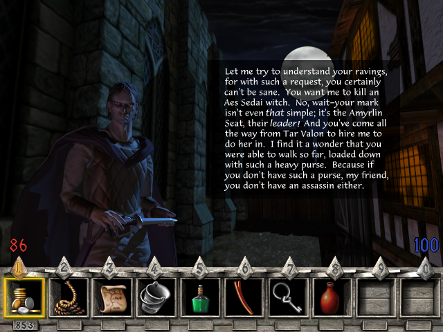 Thank God it didn’t take. As I’ve learned from my experience making a game that is a prequel to the books, which—for its genre—does a credible job staying faithful to its source material, I would have been crucified for the original adventure game. I was retelling the tale. I was using original characters. I changed things! I finished the story with a confrontation between Rand and the Dark One!